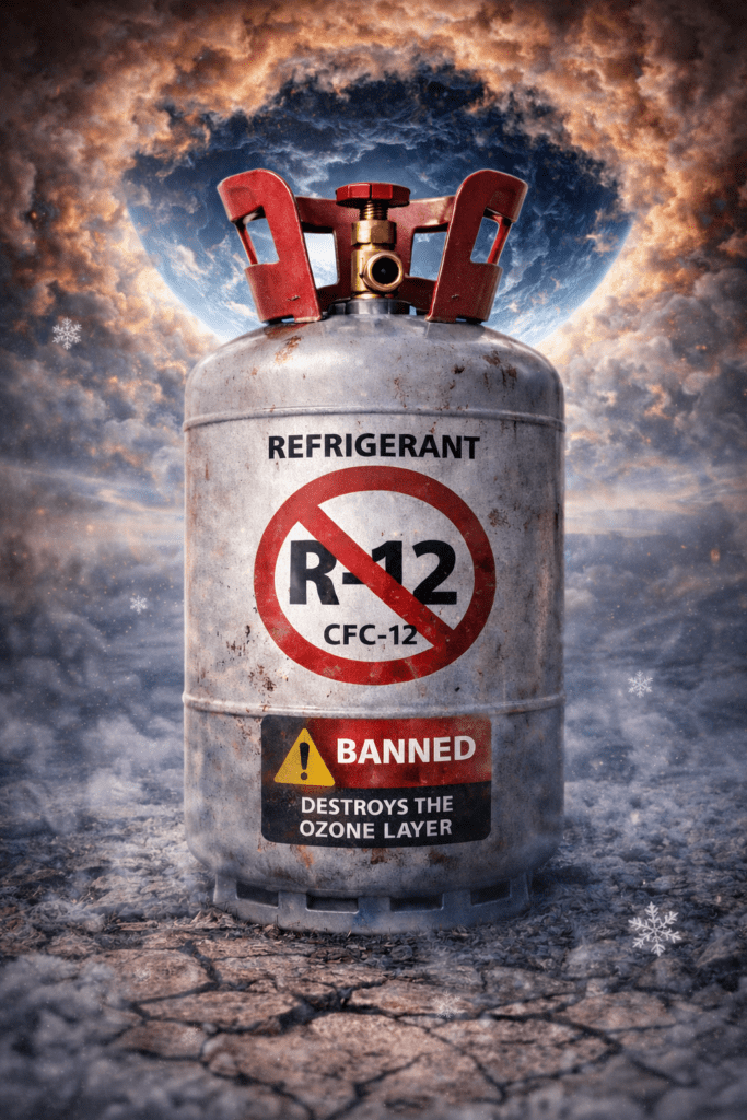 R-12 to historyczny czynnik chłodniczy stosowany w klimatyzacjach samochodowych starszej generacji. Był powszechnie używany w pojazdach produkowanych do początku lat 90., zanim został wycofany ze względu na bardzo wysoki wpływ na środowisko.